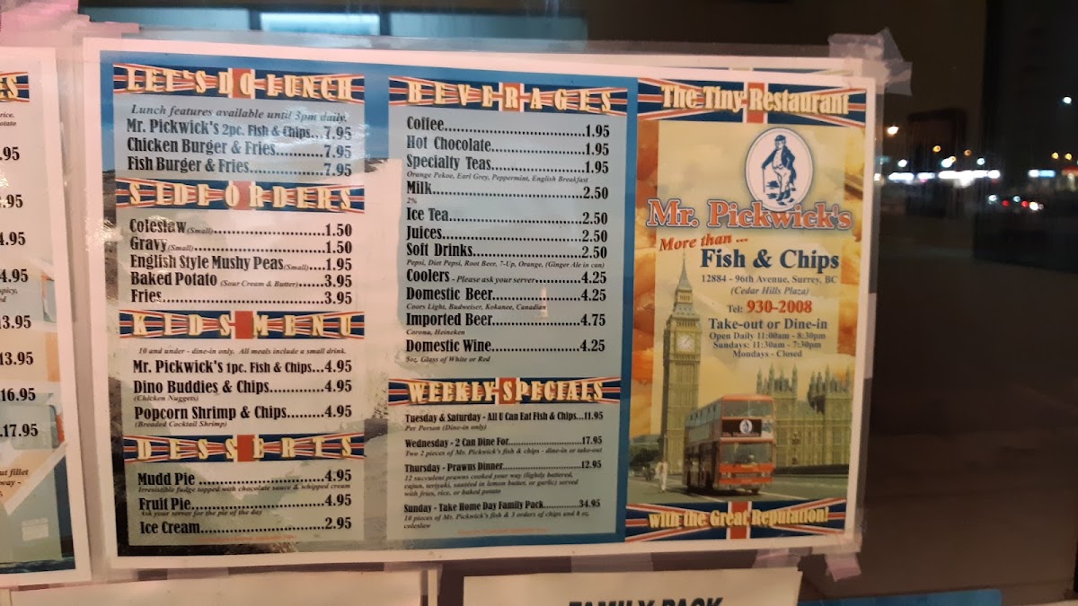Welcome to Mr Pickwick's Fish & Chips, an iconic culinary gem situated in Surrey, BC, at 12884 96 Ave. This establishment prides itself on delivering authentic English-style fish and chips that keep customers coming back for more.
